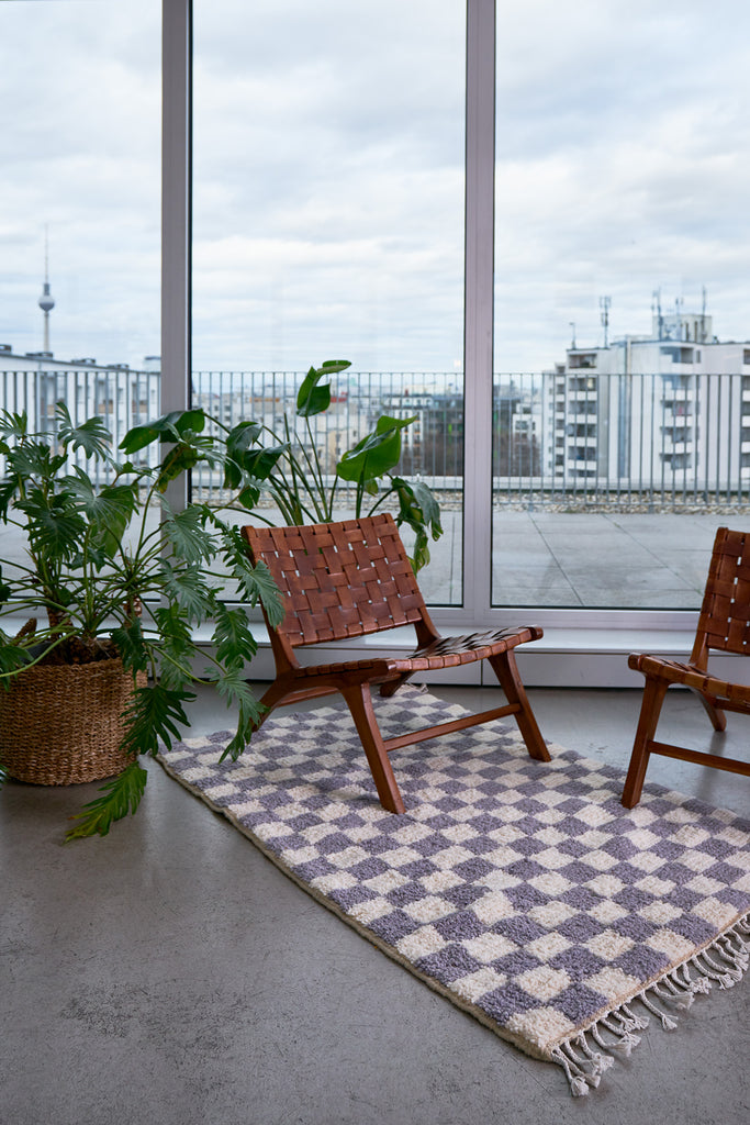 It is just what your house needs: a perfect mix of traditional craftsmanship and modern design. Something that catches everyone’s eye but still features a simple pattern so that you will take pleasure in it for a long time. Each rug is designed by our Hand In Hand founder Cloudy Zakrocki in consideration of classic aesthetics and current trends. Our creamy Checkmate rugs feature the perfect off-white in combination with another soft color, making it possible for you to enjoy the checkerboard pattern without going all in – but still giving your space more character. They are simply as sweet as your favourite ice cream flavour.