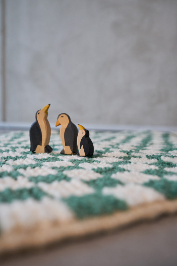Low floor for KID’S ROOMS, KITCHENS, BATHROOMS: Choose this special version of our Chekmate rug for kid’s rooms, kitchens and bathrooms! We have developed this exclusive lower knotting technique for spaces where you want to have the same comfort and coziness from our normal rugs but something that is easier to clean and able to absorb any moisture or dirt more directly. Check the picture with the penguin to see the difference in fluffiness.